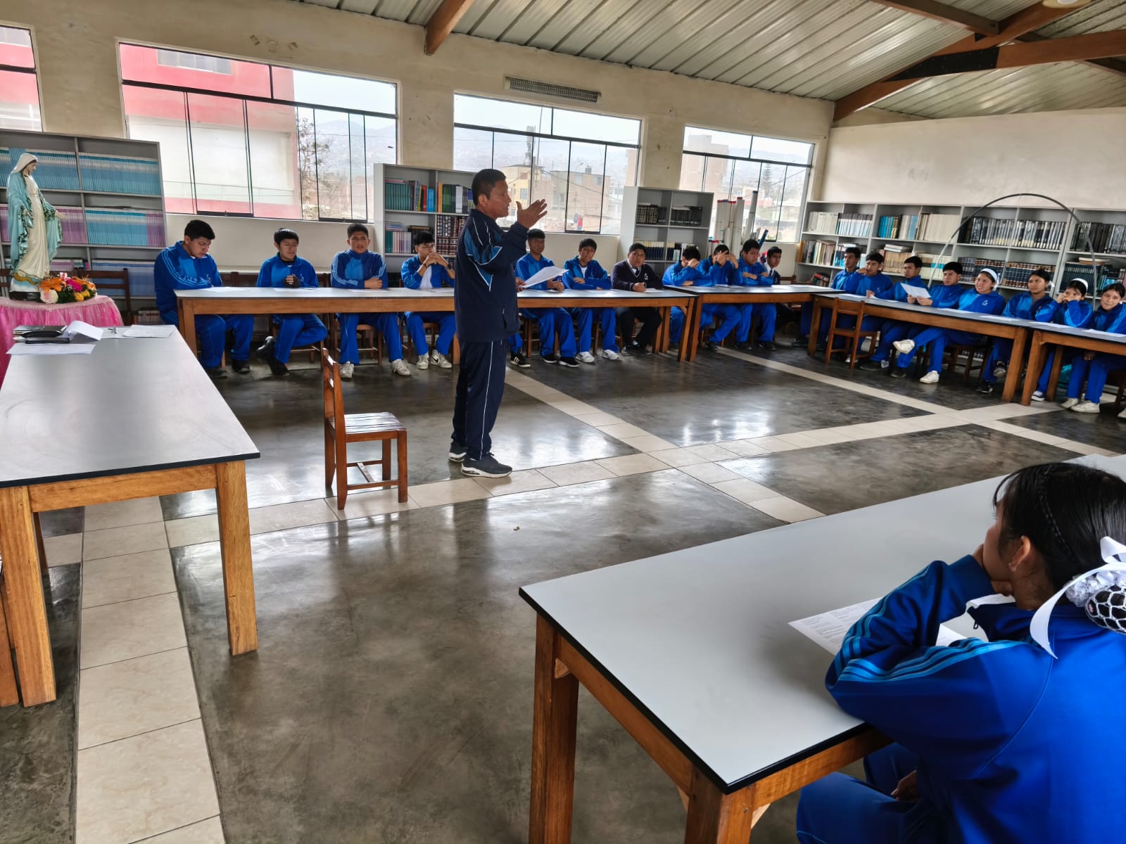 - Colegio e iglesia en funcionamiento